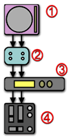 to a line level input on your mixer (4).