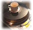2. Before putting a record on the platter, find something to put on it that will raise the record high enough to clear the tone arm and the now reversed cartridge. Here I used a roll of duck tape. |
